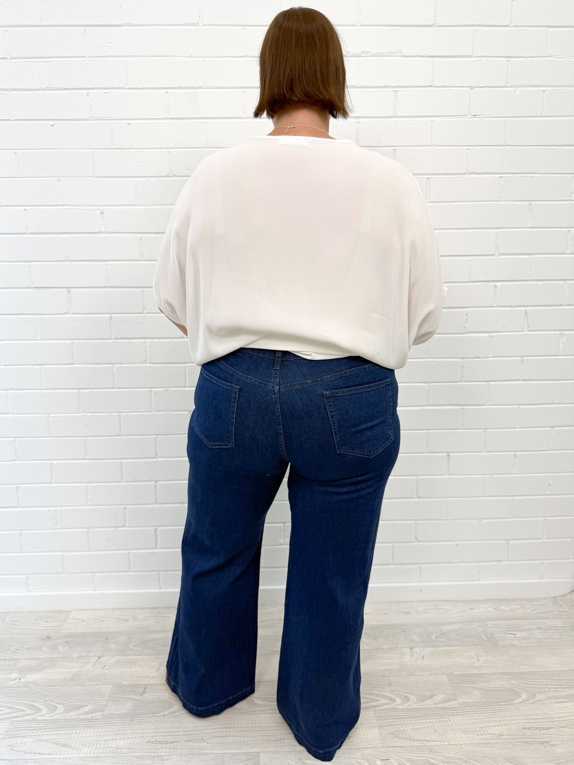 Wide leg and just so good on, they have a little pocket at the front, and they are lovely and stretchy. High waisted, sitting just on the belly button, the shape of these is AMAZING.